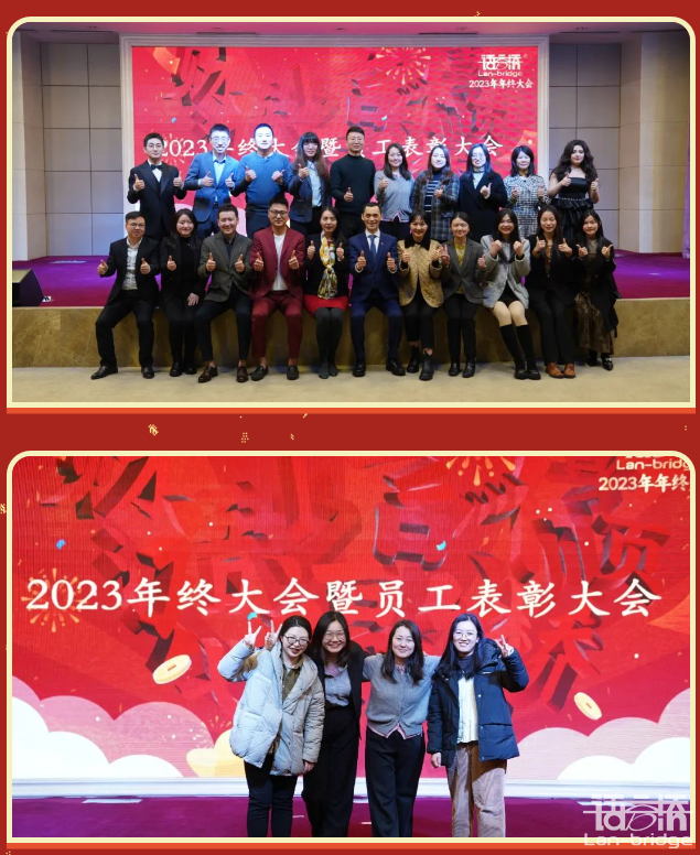 1月25日,語言橋集團2023年終總結暨表彰大會順利舉行。本次年會同步進行現場直播,共邀集團各分公司的橋友們一同分享這份歡樂。