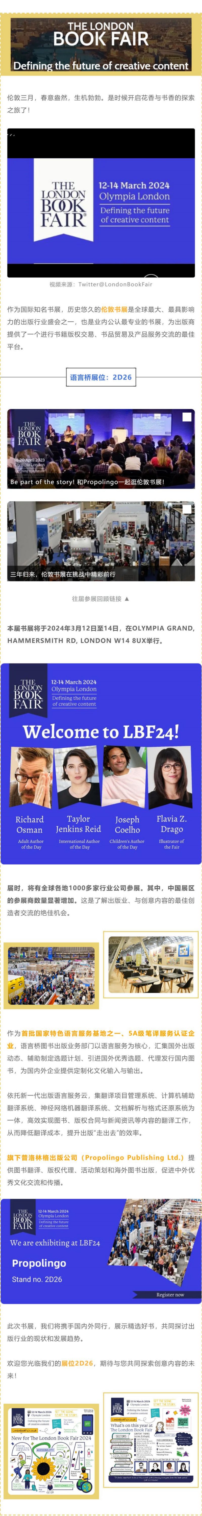 "2022年英國倫敦書展(www.londonbookfair.co.uk )將于4月5日到4月7日在英國倫敦奧林匹亞會(huì)展中心回歸,這也將是疫情以來相當(dāng)具有影響力的國際書展。倫敦書展是出版業(yè)的行業(yè)盛會(huì),語言橋?qū)⒎e"...[查看更多]