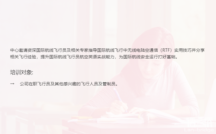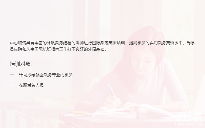 進入語言橋官網(www.lan-bridge.com)后,點擊網頁頂部菜單欄【服務項目-國際化創意服務-航空語言服務】,即可訪問頁面進行瀏覽。