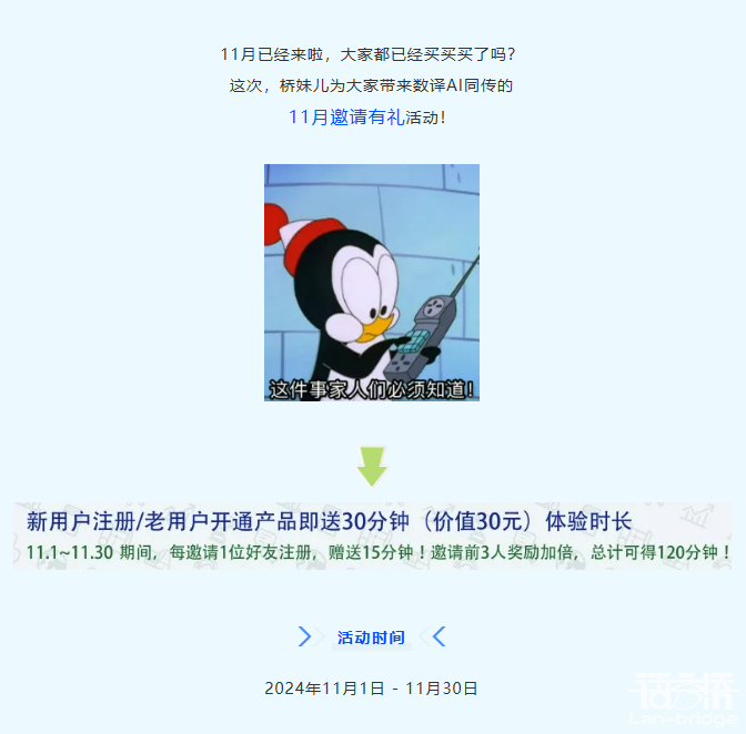 "更多活動內容請掃碼關注語言橋之聲公眾號相關推送 或直接復制鏈接地址: https://aitongchuan.dtranx.com 在瀏覽器中打開獲取"...[查看更多]