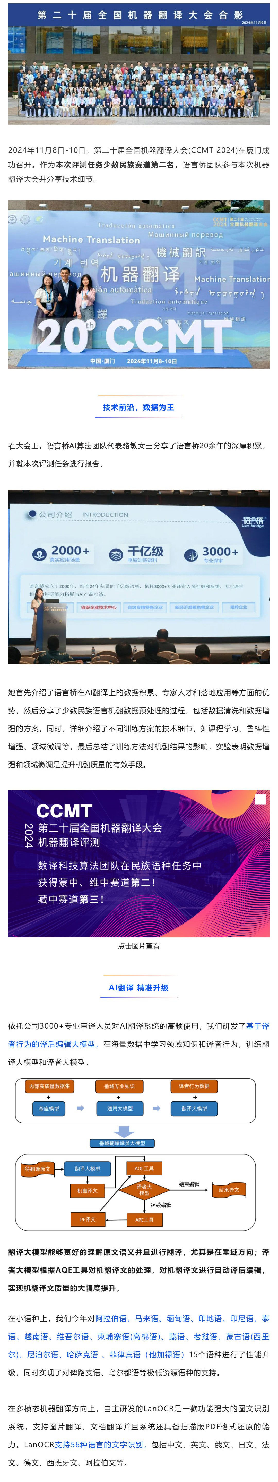 "近期,第二十屆全國(guó)機(jī)器翻譯大會(huì)機(jī)器翻譯評(píng)測(cè)(CCMT 2024)成功舉辦,在比賽中不乏華為、OPPO、蜜度等大廠的激烈角逐,語(yǔ)言橋集團(tuán)旗下數(shù)譯科技算法團(tuán)隊(duì)在民族語(yǔ)種蒙中、維中、藏中"...[查看更多]