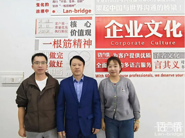 為進一步加強校企合作,推動翻譯人才培養與行業需求對接,近日樂山師范學院外國語學院前往四川語言橋信息技術有限公司成都總部展開了一系列深度交流與合作活動。這些活動不僅勾畫了雙方在翻譯教育與產業融合方面的共同愿景,也為學生提供了寶貴的實踐機會和行業發展指導。11月8日,樂山師范學院外國語學院江世勇院長和應用英語系王林主任一行蒞臨語言橋成都總部,校企合作事業部李璐總監陪同江院長一行參觀了公司,特別介紹了翻譯中心各部變化和新成立的A事業部,深入了解了語言橋在多語言服務領域的最新發展和創新成果。