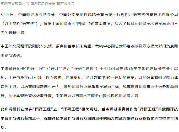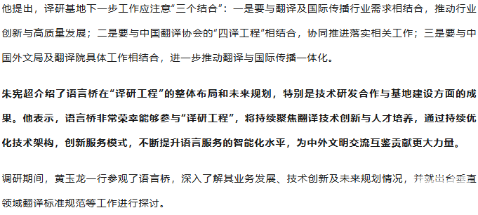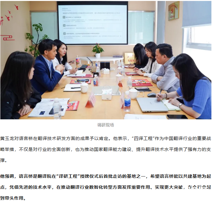 黃玉龍赴語言橋調研中國翻譯協會“四譯工程”落實情況